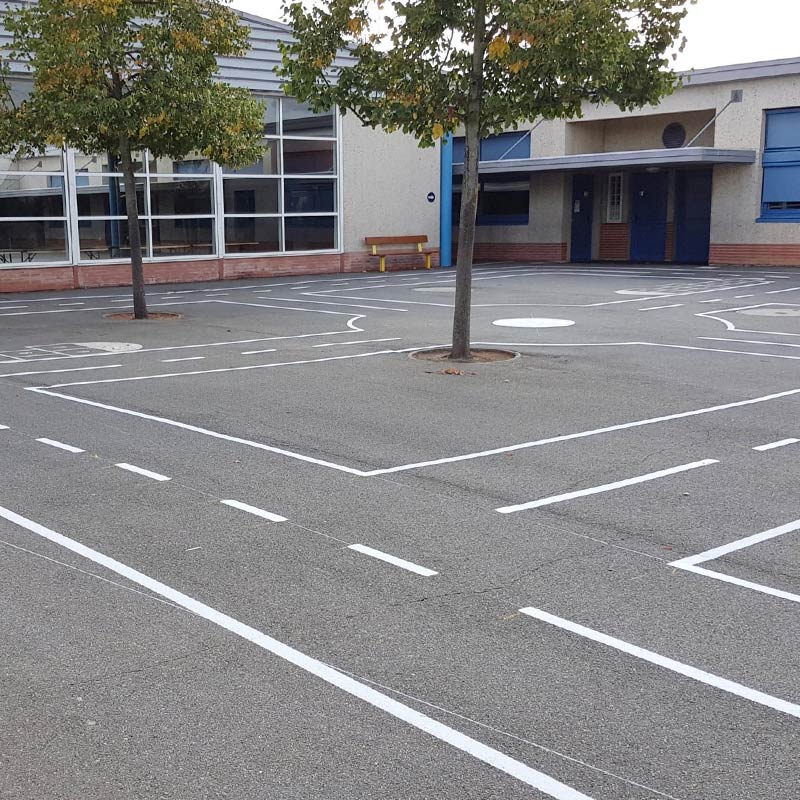 Le marquage spécifique passe aussi par les jeux écoles et terrains multisports. Ce marquage décoratif est un terrain de jeu de plein air qui stimule l’éveil et l’apprentissage des enfants par l’amusement. C’est donc un bon moyen d’assurer la pédagogie et l’éducation au travers de thématiques diverses tels que les circuits et routes, sports, chiffres et lettres, marelle, etc. Tout cela dans le respect de la croissance des jeunes.
