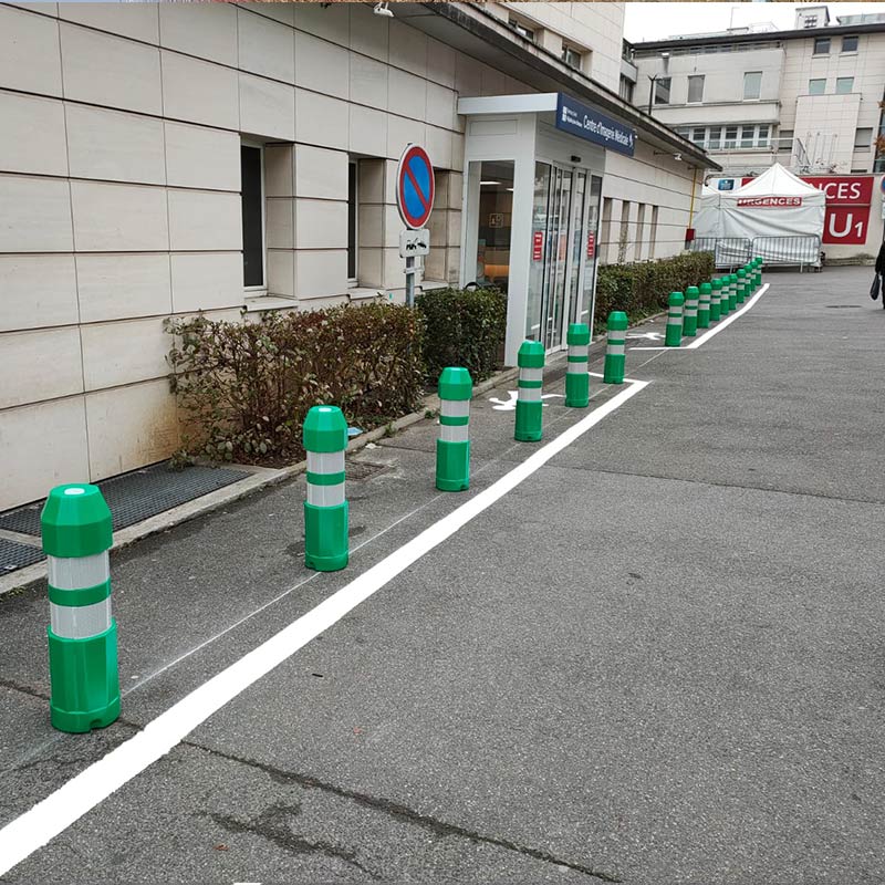 - Accessibilité PMR : bandes d’aide d’orientation, bandes podotactiles, potelets PMR, etc.